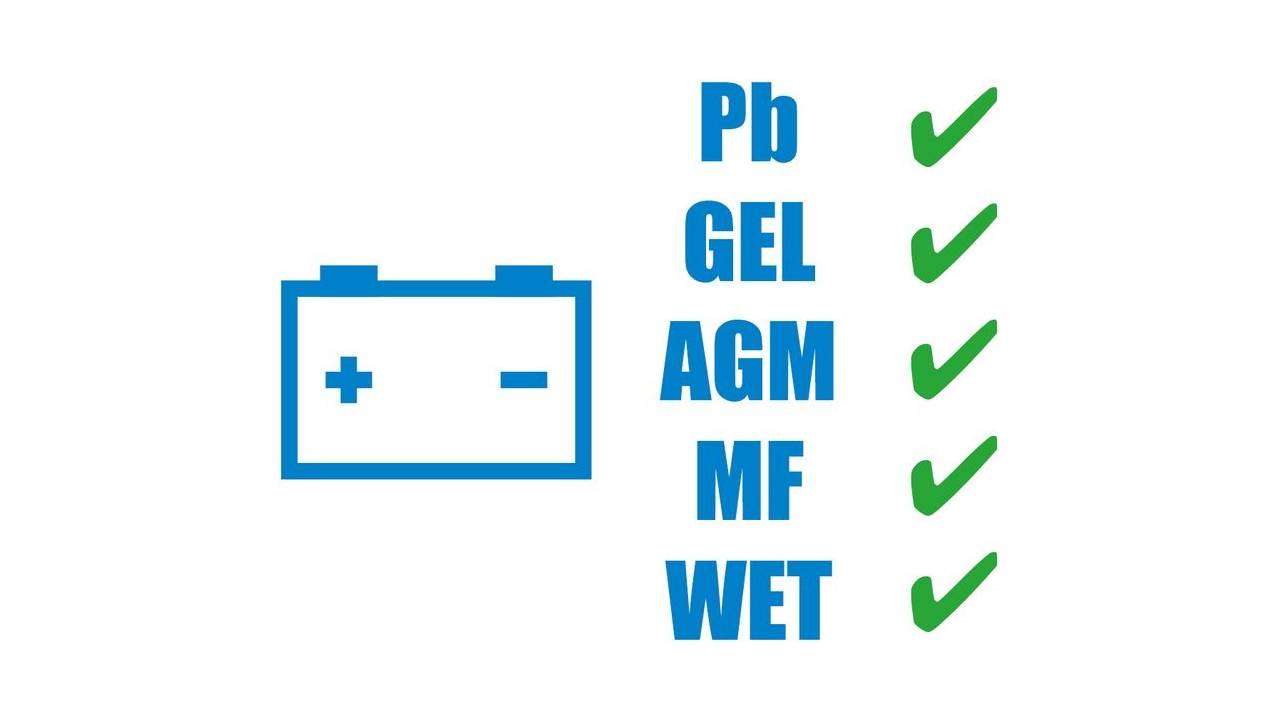 | Τύποι Μπαταριών | Όλοι οι τύποι των 6V και 12V μπαταριών μολύβδου (WET, MF, Ca/Ca, AGM και GEL) |